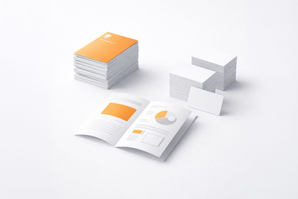 Create a strong first impression with professionally designed business cards and branded stationery that reflect your company’s identity.
